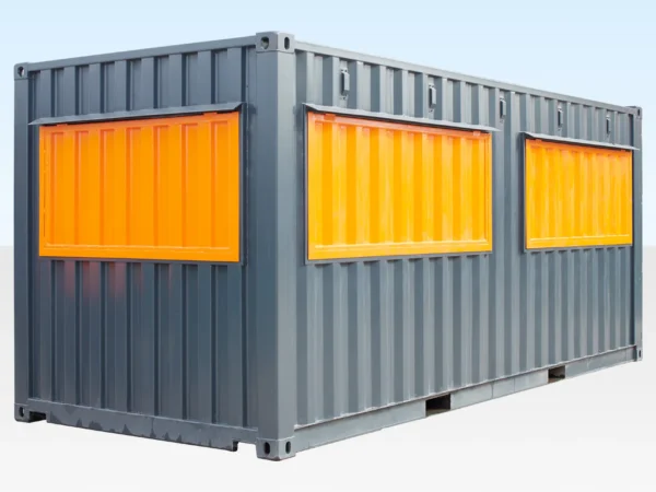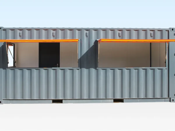 Esta cafetería construida con un contenedor de 20 pies es uno de nuestros proyectos de conversión de contenedores marítimos más populares. Se basa en un contenedor marítimo estándar de 20 pies x 8 pies y fue transformada por nuestro equipo interno de especialistas para su uso como punto de venta de alimentos o bebidas.