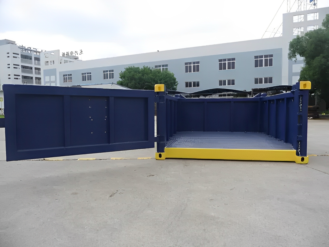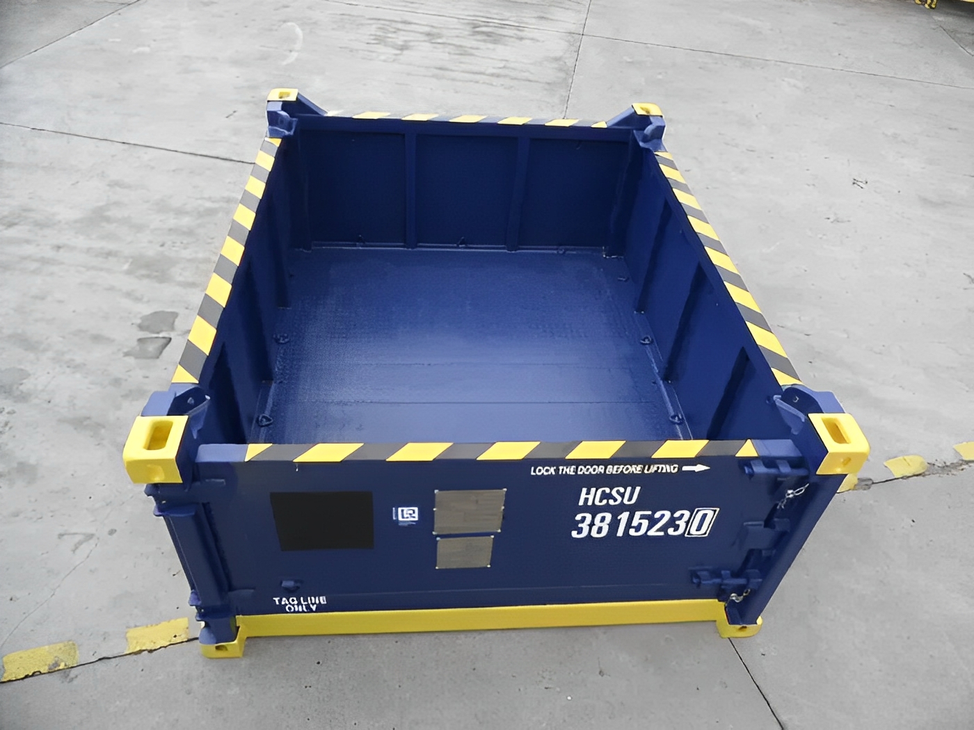 El contenedor offshore DNV 2.7-1 de media altura y techo abierto de 10 pies tiene la mitad de altura que un contenedor estándar y no tiene techo de acero. Está equipado con una puerta de acero de una sola hoja. Los contenedores son apilables y están disponibles con correas de elevación certificadas.