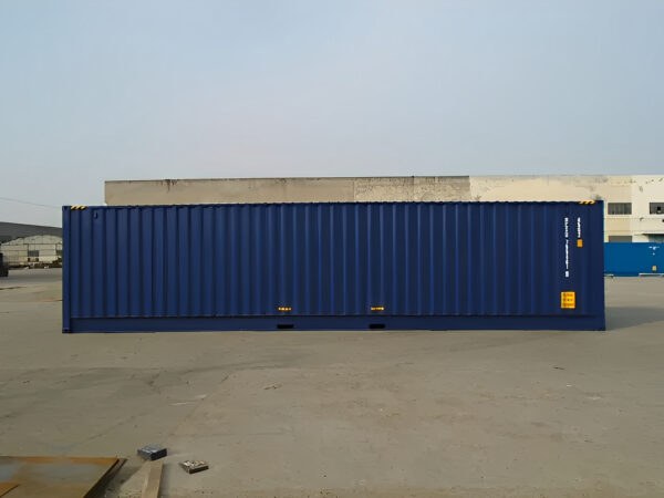 Contenedor de envío unidireccional de cubo alto (aprox. 2,9 m) de largo y 40 pies (aprox. 12 m) de largo y acceso lateral.