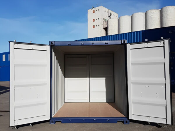 El contenedor de doble puerta de 10 pies es una solución compacta, robusta y muy versátil para el almacenamiento y transporte. Gracias a sus puertas en ambos extremos, permite una carga y descarga fácil y flexible desde cualquier lado. Al ser el contenedor más pequeño que cumple con la aprobación de la CSC (Convención para la Seguridad de los Contenedores) y las normas ISO , es ideal para el transporte intermodal por mar, ferrocarril y carretera. Es ideal para carga especial, almacenamiento en obras o proyectos de contenedores a medida, y está disponible opcionalmente con piso de acero para mayor estabilidad.