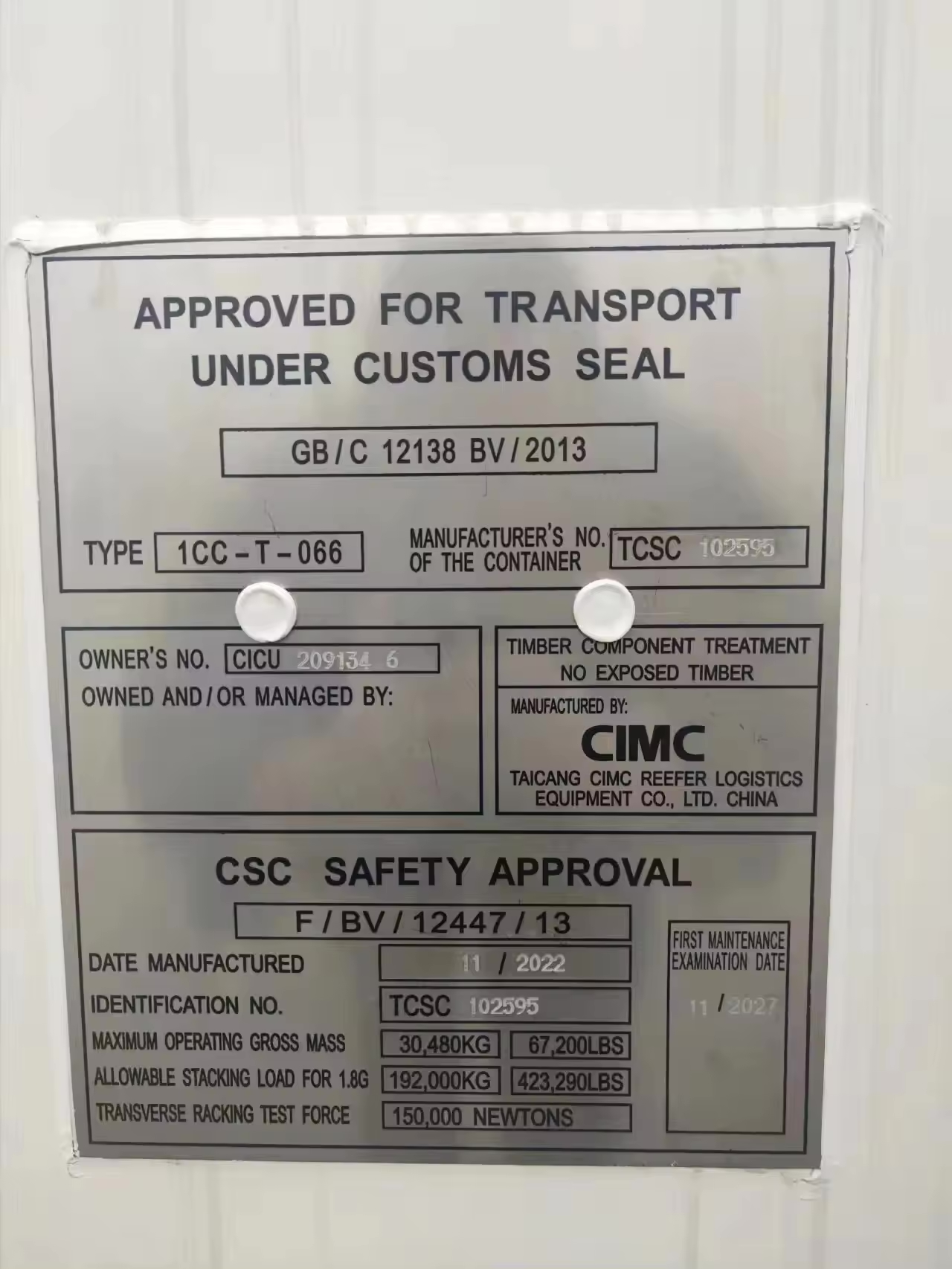 Dimensiones externas 20 pies de largo x 8 pies de ancho x 8 pies 6 pulgadas de alto