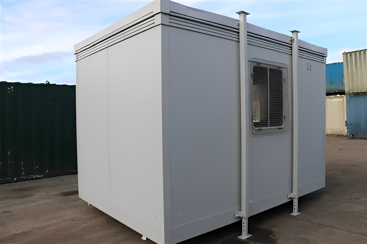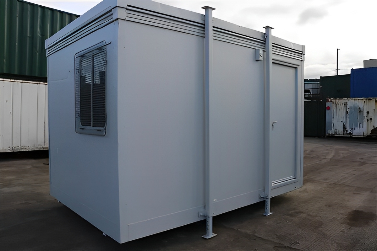 Oficina de acero antivandálica de 3,6 m x 2,4 m | Oficina móvil para obras y sala de reuniones